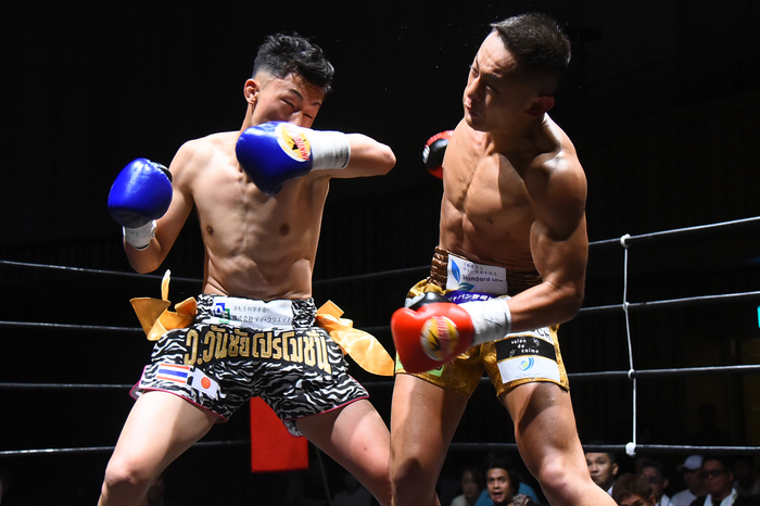 シンイチ(右)が右ストレートで優位に立つ(C)JAPAN KICKBOXING INNOVATION
