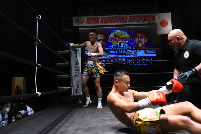 今回の興行からJAPAN KICKBOXING INNOVATIONと提携が開始されたタイ国ムエタイの殿堂、ルンピニースタジアムの認定団体、ルンピニージャパンのチャンピオンシップ第1弾がメインイベントとなったこの試合、INNOVATIONフライ級王者だった松田は、同王座初防衛を果たした後、これを返上し、不退転の覚悟で臨む。