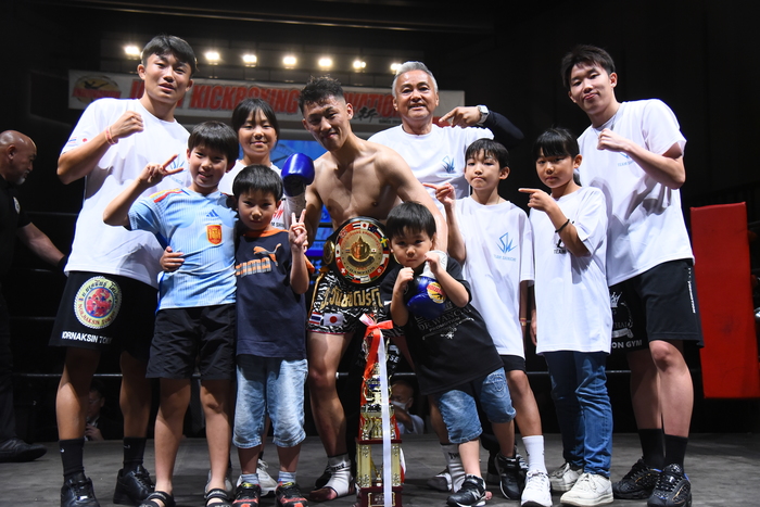 シンイチのリング上マイク「今回、3度目のタイトルマッチで2回とも駄目だったので、3度目の正直で絶対に獲ろうと思って頑張ってきたので嬉しいです! 会場に応援に来てくれた皆さん、沢山の熱い応援、ありがとうございました! これからもっと上に上がっていきたいと思いますので、よろしくお願いします!」