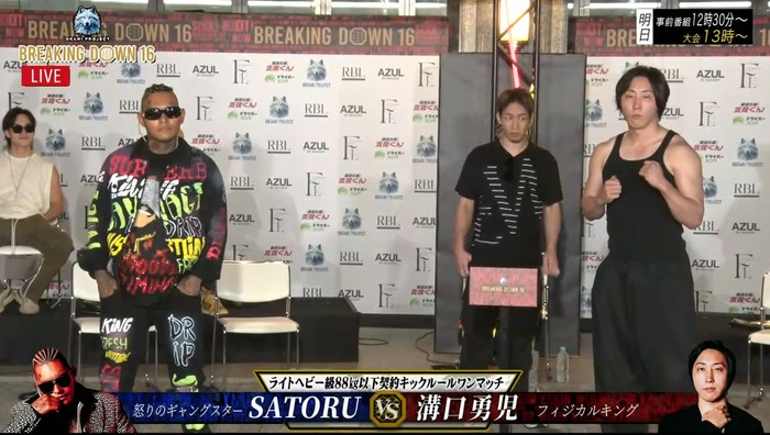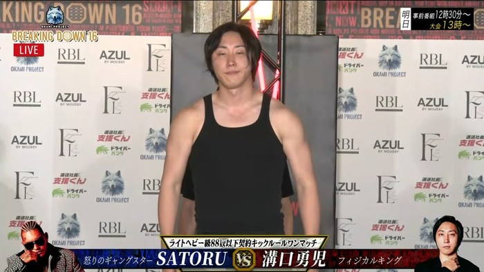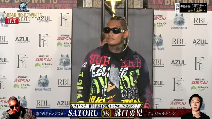 両者は2024年12月の『BreakingDown 14』で対戦し、試合開始早々SATORUにダウンを奪われた溝口が劣勢のまま1分間を終える直前に、大逆転の左フックでKO勝ちしている。