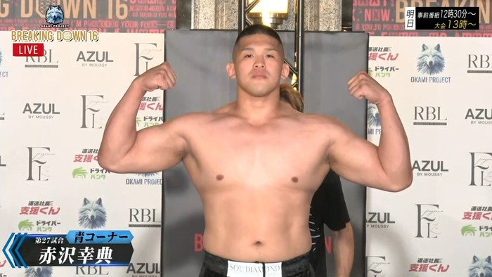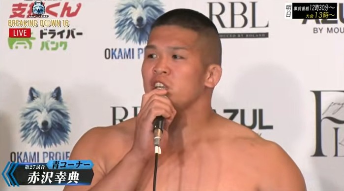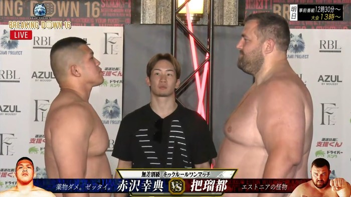 赤沢はこの圧倒的な体格差をどう攻略するつもりか、との質問を受けると「明らかに僕の方がスピードがあったりして、アウトボクシングみたいな展開になるとみんな予想すると思うんですけれど、それでは絶対に面白くないと思っているので。今までBreakingDownのヘビー級たちがヘトヘトしていたところを、僕は真っ直ぐ前へ出続けて僕が倒れるか、把瑠都さんが倒れるかって試合をします」と、小細工なしの真っ向勝負をすると宣言した。