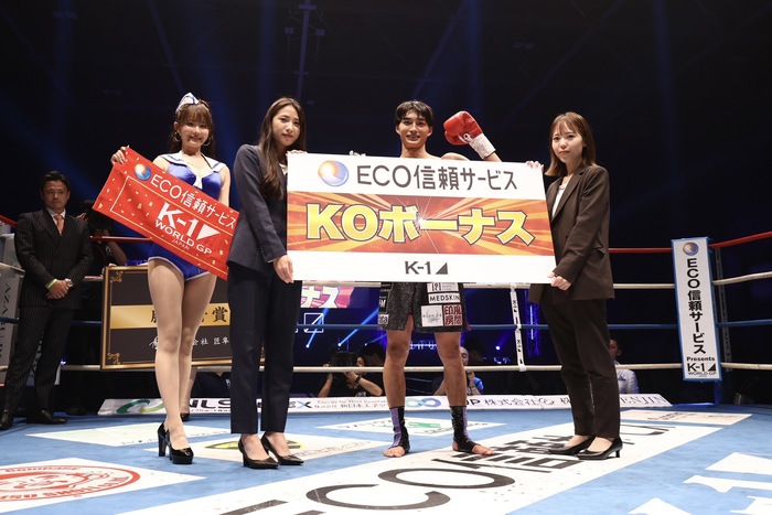 2度目のKO勝ちに満面の笑みを浮かべる大久保。マイクを持つと「勝ちたい気持ち伝わっていい試合が出来ました、ありがとうございます。僕の目標は年内に必ずK-1王者になる目標があるのでそれを叶えるために日々練習して勝ちます。それに僕はどの選手よりもK-1に対する想いがあるので、今年中に会長と一緒にベルトを獲ります。K-1最高っ!」とアピールした。