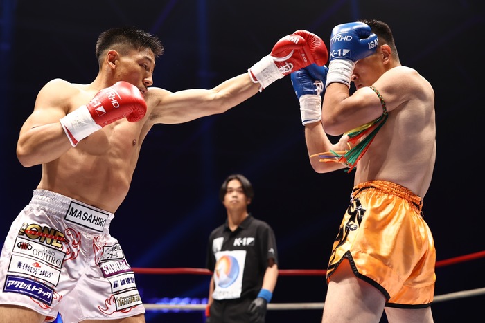 2RもKO-TAは同様に両腕ブロックを上げて前へ出る。平山はジャブとプッシュで距離を作ってヒザ、左右ロー。ガードの隙間から右アッパーも打つ。平山のワンツーがKO-TAのガードを破壊し始め、KO-TAも至近距離になると左右フックを打つ。平山の右ローからのワンツーがヒット。しかし、平山の左アッパーにKO-TAが右ストレートのカウンター。これで動きが鈍った平山にKO-TAが右ストレート、左フック。平山も負けじと右ストレートを打ち返した。平山が序盤でペースを握ったか。