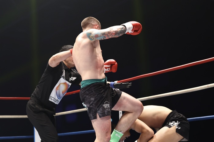 2R、ムシンスキがいきなり右フック。ヨンホイはステップで回り込むが、ムシンスキが右カーフを蹴る。ジャブを出すヨンホイにムシンスキは左ミドル。ヨンホイも右カーフを2発蹴り、右ストレートをヒットさせる。ムシンスキは左右ボディ、ヨンホイも打ち合う。ヨンホイはカカト落としを繰り出すが、ムシンスキが左ボディ。