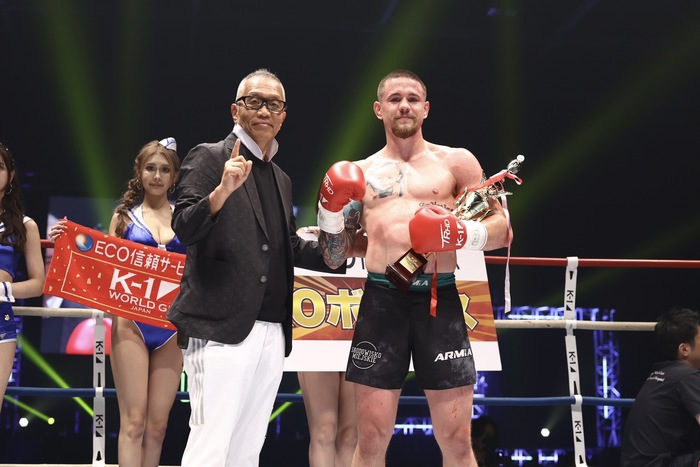 1R、前に出るムシンスキは右カーフと右フック、ヨンホイも左右ローを蹴る。ムシンスキは右クロスから右ロー、ヨンホイはジャブを突いて右ストレートから左ロー、前に出るムシンスキが左ボディを打つ。ヨンホイの攻撃をものともせず、前に出て前蹴り、左ミドル、左フック。最後には後ろ蹴りを繰り出し、そのまま右ボディを打つ。ムシンスキが圧倒的な圧力の強さを見せた。