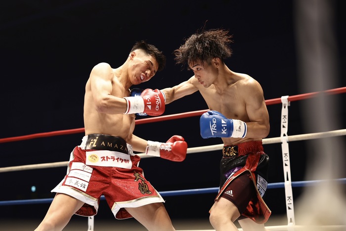 2R、大地の右ローに左フックを合わせる一志。右カーフを蹴り合い、大地が右ボディを強打すれば、すかさず一志が右フックを打ち返す。互いに危険な距離でフックを交わし合い、互いに被弾。一志は左の三日月、大地は左フックと右ボディで前へ出る。それを右ストレートで迎え撃つ一志。