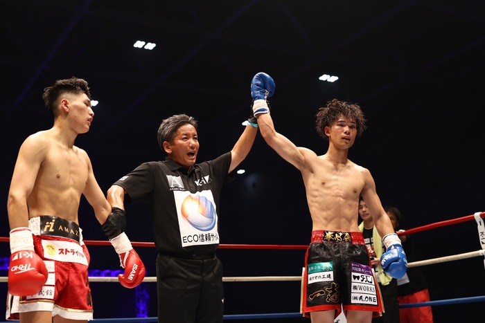3R、前に出る大地に一志が右フックの相打ち。大地のヒザに一志は右フック、大地はヒザに活路を見出したかに見えたが、ローブローとなってしまう。大地の左フック、右ストレートがヒットすると一志も左フックを打ち返す。ラスト1分も打ち合う両者。大地が左右フックで前へ出る。そこでカウンターを狙う一志。互いのパンチが当たる距離で打ち合い、試合を終えた。