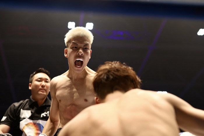 前に頭から倒れた湯桶のダメージは深く、琥伯の逆転KO勝ちとなった。