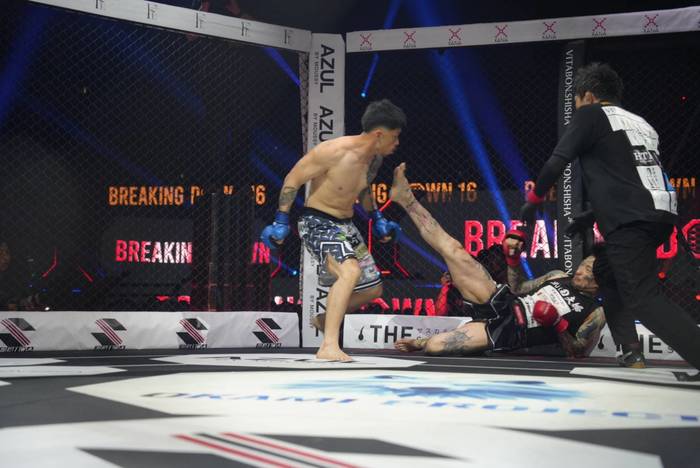先に左ローの貴は左ミドルを当て左で押し倒すが、立ち上がる瓜田。なおも貴の右にダウンする瓜田だが、ヒザを突いて左右で前に。しかし貴が右のダブルを当てると、瓜田がダウン。貴がKO勝ちした。起き上がった貴は周囲を振り払って貴とハグ。貴は「リスペクト」の声をかけた。