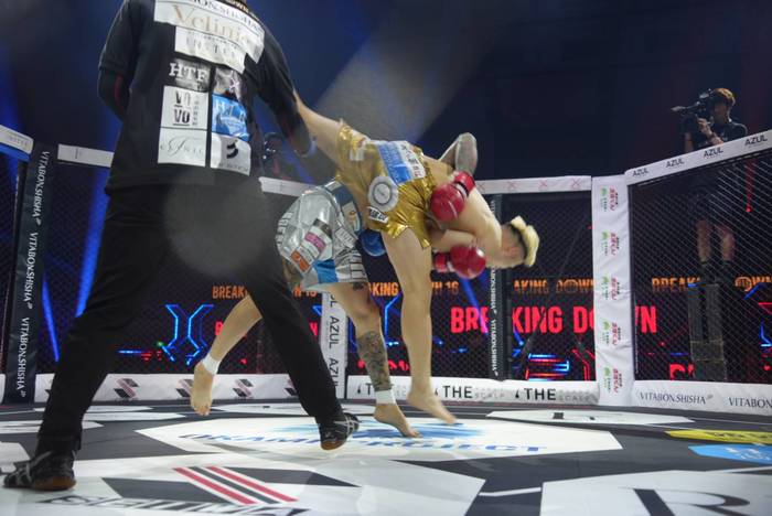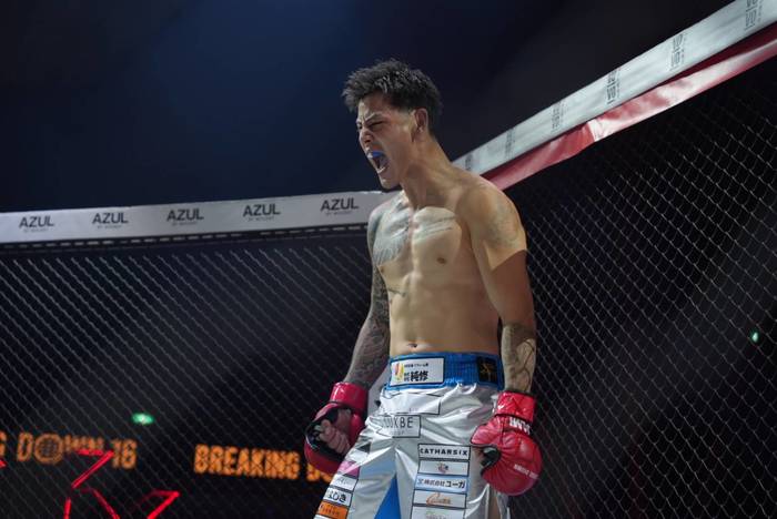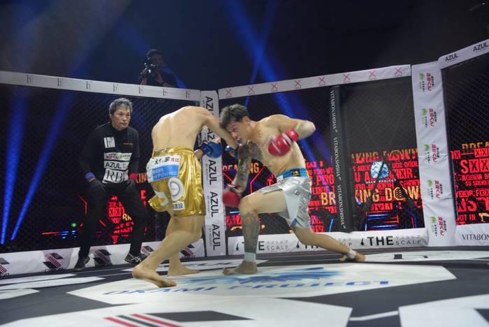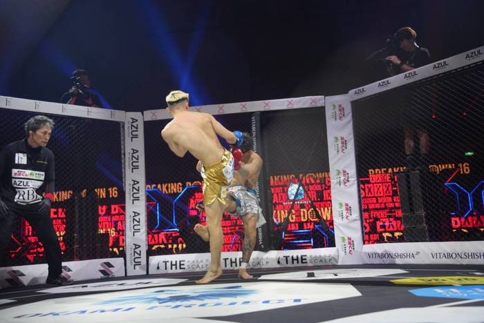 先に詰めた龍盛。リキの詰め返しに組んできた龍盛を投げるリキ。長いリーチで左右の回転はリキ。龍盛は右ミドルも距離が足りない。判定はリキが5-0で勝利。