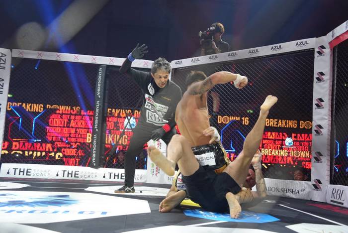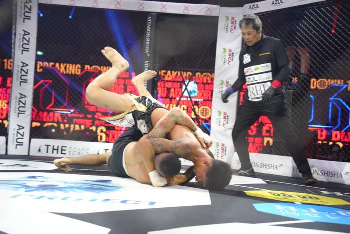 外枦保が上になるもブレーク。森の額が切れてドクターチェック。再開。外枦保の右ハイをかわして組んだ森の投げを小手でトップ奪う外枦保がマウントでパウンドでゴング。判定0-5で外枦保が勝利。