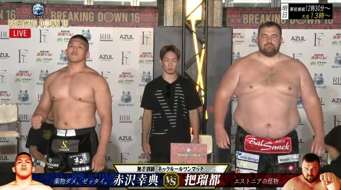 把瑠都はエストニア出身の元大関でRIZIN3勝1敗、赤沢幸典はMMA6勝6敗。赤沢は2024年5月のDEEPで140kgのベンツに1R TKO勝ちして以来の試合。把瑠都は、2016年大晦日RIZINでミルコ・クロコップに1R KO負け以来の試合となる。