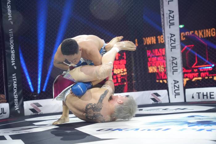 2R、左前蹴りのジョリー。秋元の連打にダブルレッグのジョリーは脇を潜りバックへ。前に落とされずに足をかけたジョリーは腕十字も狙うがブレーク。左右から右跳びヒザの秋元だが、ジョリーはシングルレッグテイクダウンで上でゴング。