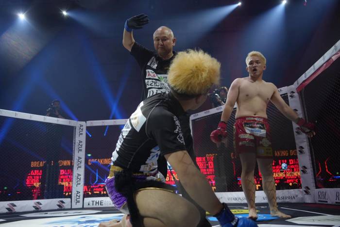 いきなりのノーガードの打ち合いで右から左フックでダウンを奪った川島。10人ニキは口から出血。ドクターチェック後、頭から突っ込んだ10人ニキに川島が右を当てて、10人ニキは前のめりにダウン。ゴングが鳴らされた。