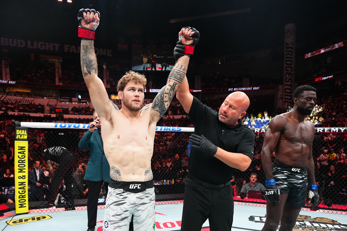 マシューズは、14年11月に19歳でUFCデビュー、11年目。ライト級からウェルター級に上げて25年2月の前戦では、フランシスコ・プラドに判定勝ち。30歳。