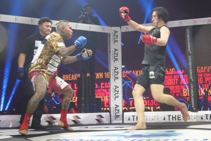 第12試合で大野篤貴が池田晃樹を延長戦で破り、試合後、ケージインしたBreakingDownバンタム級王者・井原良太郎と対戦の約束を交わしたことには「17で組みたいなと思っています」と、両者のタイトルマッチは実現の方向のようだ。
