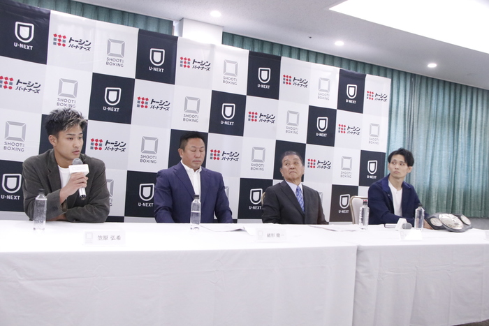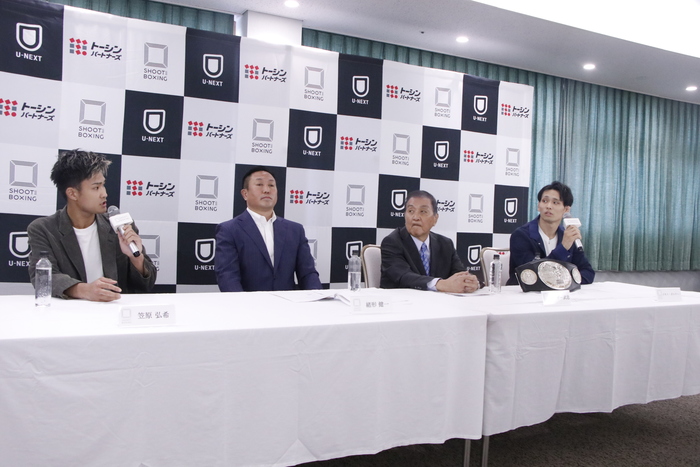 会見には、すでに発表されていたシュートボクシング日本スーパーライト級タイトルマッチで対戦する、王者イモト・ボルケーノ(FIGHT SCIENCE)と挑戦者・笠原弘希(シーザージム)が出席。