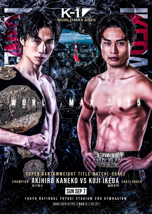 K-1 WORLD GPスーパー・バンタム級タイトルマッチとして、王者・金子晃大(K-1ジム自由ヶ丘/FROG GYM) が池田幸司(ReBORN経堂)の挑戦を受け、3度目の防衛戦に臨む。
