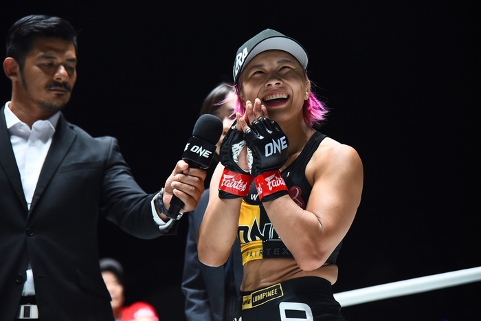 試合後のインタビューでは、「コップンカー。まず、そうですね。見てくださった皆さん、ありがとうございます。私はどんくさくてなかなかこう……試合では今すごいフィニッシュできてるんですけど、日本のみんなのおかげで、こうやって5大会連続で勝つことができてます。今回も勝てたんですけど、まだまだ反省点が残る試合だなとも思ってますと。私一人の力じゃなくて、みんなが支えてくれてるおかげでしっかり勝つことができてます」と涙ぐみながらコメント。