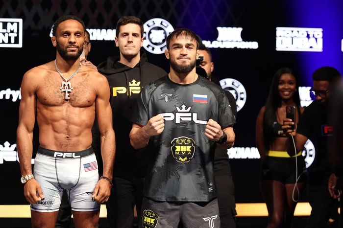 Artur Zaynukov and Takeshi Izumi weigh in clean! 🔥 Dagestan’s striker vs. Japan’s wrestler.#PFLCapeTown pic.twitter.com/wfsFW5HyQY