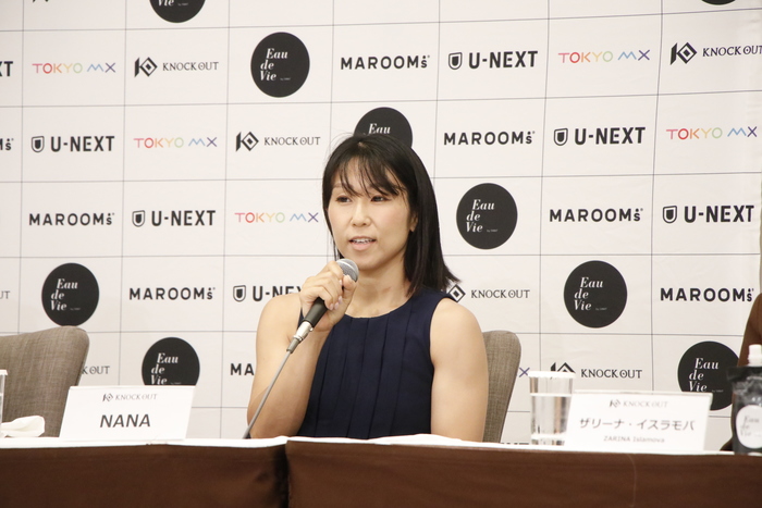 最後に、今後女子王座の新設が予定されていることに対しての気持ちを聞かれると、イスラモバは「私は勝つために来ました。自分がベストであることを見せに来ました。必要であれば体重を落とすことも出来ます。明日はKOしたい。そしてベルトが欲しい」と意欲を見せ、NANAも「私もベルトがもちろん欲しいです。UNLIMITEDルールにもちょっと興味があります」とBLACKルールだけでなくUNLIMITEDルールへの挑戦にも意欲を示した。