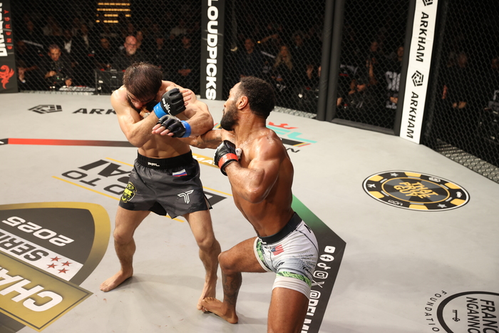 AJ McKee lands a BIG body kick at the end of Round 1. Was Akhmed Magomedov saved by the bell? 👀#PFLCapeTown 🇿🇦 | TODAY | Grand Arena, GrandWest | Cape Town, South Africa | 🇺🇸 LIVE NOW on ESPN+ pic.twitter.com/0477xISqHG