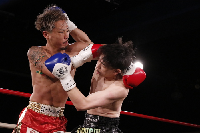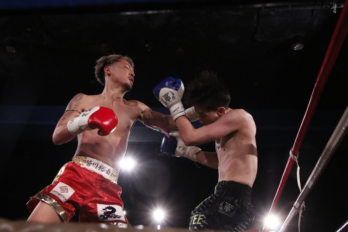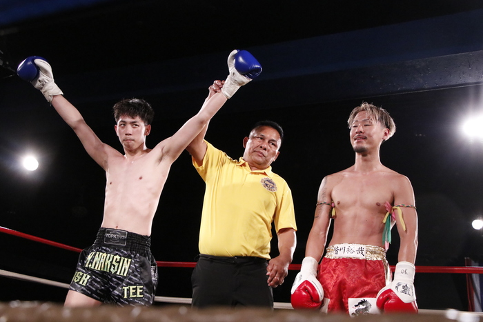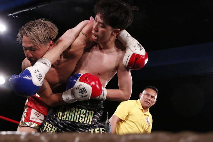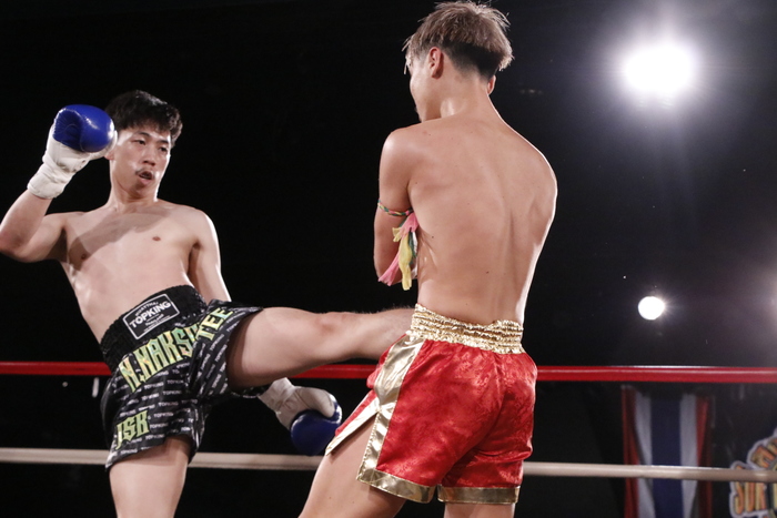 1R、前に出る皆川の攻撃にティーは左ミドル、前蹴りを上手く合わせる。皆川は右ボディストレートを主軸にボディを攻める。上手いコカしも見せたティー。
