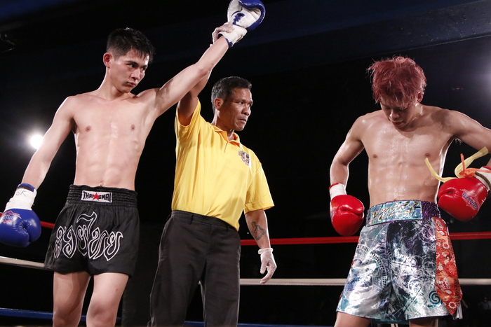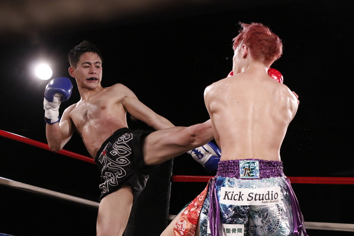 1R、日本猿はハイキックをたびたびヒットさせ、左ミドルを蹴る。高橋は右を思い切り振っていき、日本猿のハイキックをもらうと“効いてないよ”のポーズ。