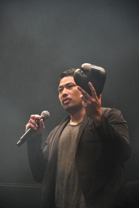 大会開始前には、佐山聡氏の息子であり、アルティメットシューティングのプロデューサーを務める佐山聖斗氏が登壇し、競技のコンセプトについて説明がされた。あわせて、次回大会以降に導入予定のバンテージと一体型という新型グローブもお披露目され、その特徴や機能性についての解説が行われた。