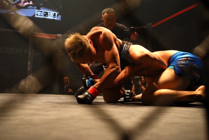 スタンドで再開されると、キャプテンの左ストレートが的確にヒット。距離を詰め、再び巻き投げでテイクダウン。残り20秒、マウントからのパンチを連打し、アーニーがうつ伏せになったところでレフェリーが試合をストップ。
