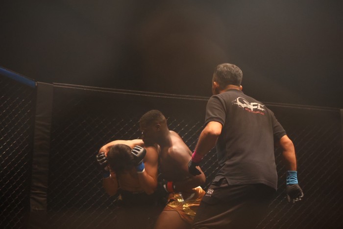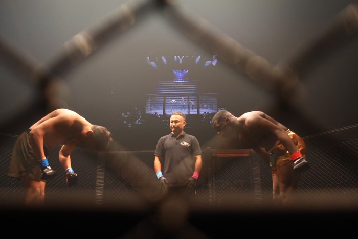 両者ともにボクシングを得意とする打撃型ファイターで、開始前から激しいパンチ戦が予想された。場内、お互い、そしてレフェリーに礼をして試合が始まる。この所作は、現代のMMAやキックボクシングのイベントではほとんど見られないものであり、新鮮な印象を与える。