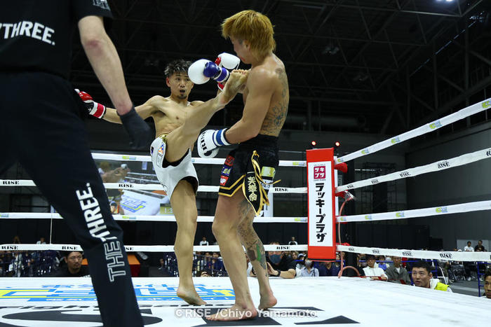 第3試合のバンタム級キックボクシング3分3Rで、アーサー・クロップ(フランス/Phuket Fight Club)と中野椋太(誠至会)が対戦。