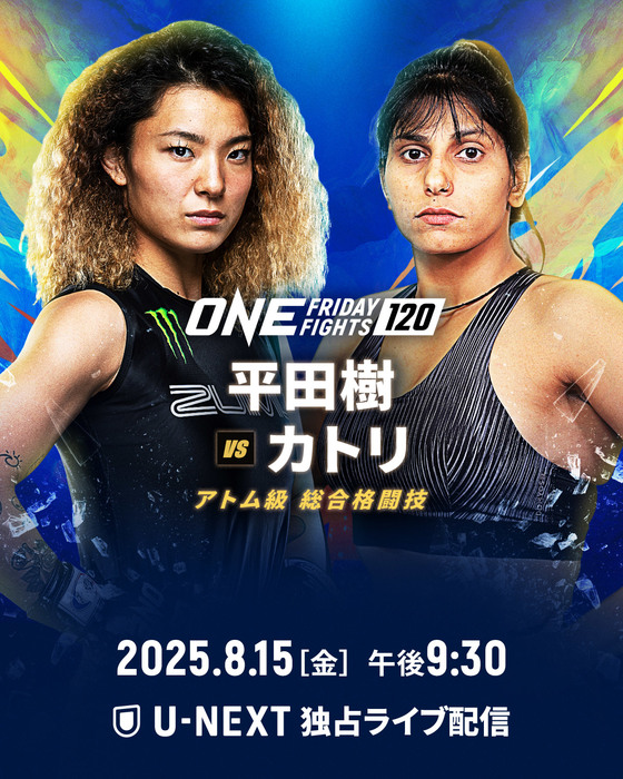 2025年8月15日(金)にタイ・バンコクのルンピニースタジアムのリングで開催される『ONE Friday Fights 120』(U-NEXT配信)にて、平田樹(フリー)の1年2カ月ぶりの復帰戦が決定。プロMMA6勝無敗(2KO・3一本)のアーティ・カトリ(インド)とアトム級で対戦する。