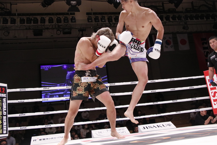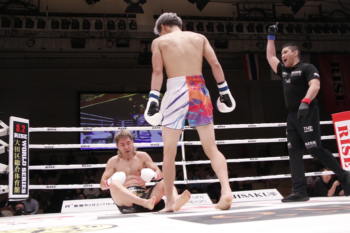 2R、右ローを蹴っていく太陽に武は左ボディを狙い撃ち。徹底して左ボディを打つ武に太陽はパンチからの右ローで対抗し、バックキックからの右ヒザでダウンを奪う。