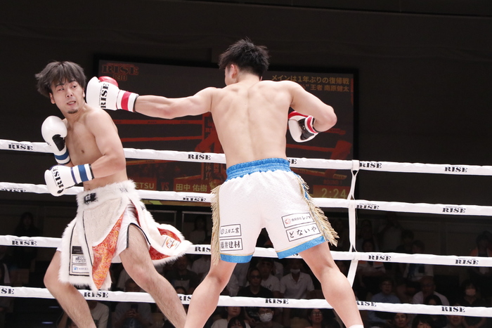 田中はStand Up King of Rookie 2021 -63kg級優勝。RISE、シュートボクシング、DEEP☆KICKなど様々なリングに上がっている。前戦ではRISEで森本現暉に判定負け。戦績は7勝(2KO)3敗。