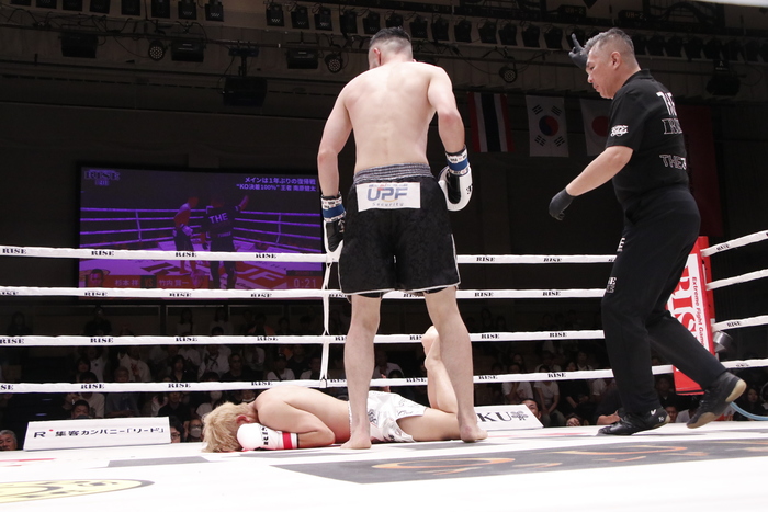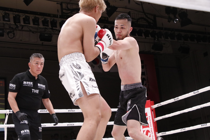 1R、杉本は左インローを蹴っていき、竹内は左ボディとヒザでボディを攻めていく。杉本もヒザで応戦し、互いにボディを攻める中、杉本の左フックがヒット。これで動きが鈍くなった竹内に杉本はヒザで追い込み、最後は左フック。竹内は立つことが出来ず、杉本のKO勝ちとなった。