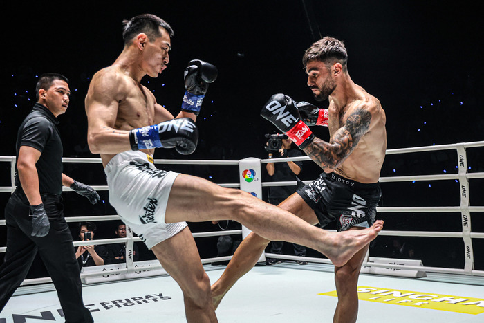 2R、右ロー&カーフを蹴っていく中野にクロップも右ローを返すが、中野の左フックを浴びて再びフラつく。中野の左ローがローブローになって中断。再開後も右ローの蹴り合いが続く。