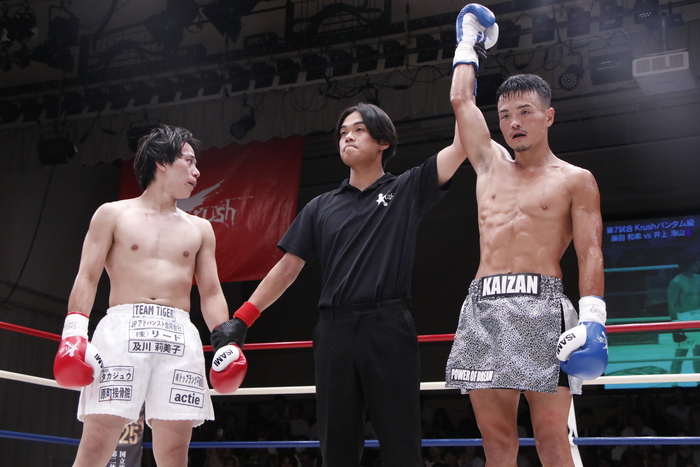 井上は2021年11月からKrushに参戦し、2025年5月の大輝戦まで3勝(1KO)1敗。通算戦績は6勝(3KO)2敗。