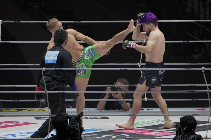 離れた扇久保だが右から左ミドルに繋ぐ扇久保。トーレスの詰めに左ハイをガード上に突いてゴング。トーレスが扇久保の組みを見切り始めたラウンド。