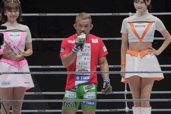 23年7月の超RIZIN.2では朝倉海の欠場に伴い急遽アーチュレッタと対戦。フルラウンド闘い抜くも判定負けでバンタム級王座の国外流出を許した。大晦日にはUFCフライ級王座挑戦を経験したジョン・ドッドソンを完封して連敗を脱出した。24年7月、神龍の指名に応じ因縁の師弟対決が実現すると、接戦を制し己の矜持を示した。再び堀口の首が射程圏内に入ったものの、その堀口はUFCとの再契約を果たし王座を返上。1年ぶりの試合となる今回、打投極+根性を信条とする自身のMMAでグランプリを圧倒的に優勝し、RIZINフライ級の絶対王者をめざす。