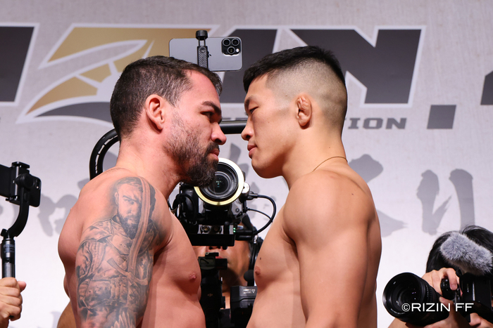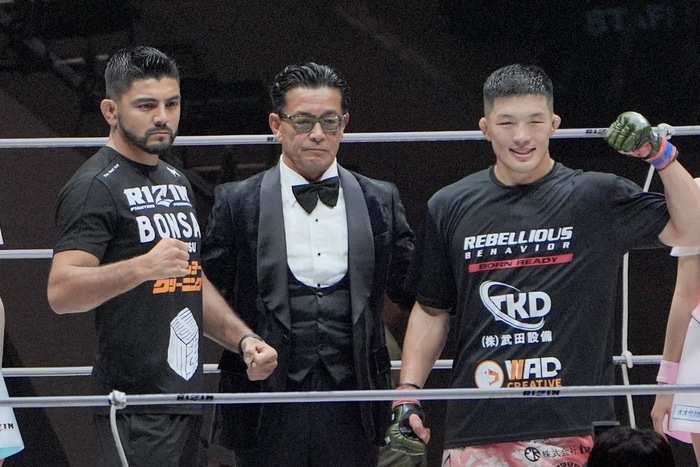 そこに榊原信行CEOがリングイン。ホベルト・サトシ・ソウザを呼び込み、9月28日名古屋大会でのライト級タイトルマッチを宣言。野村は「余裕ス」と答えた。