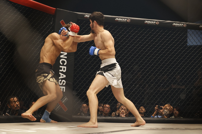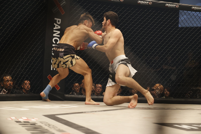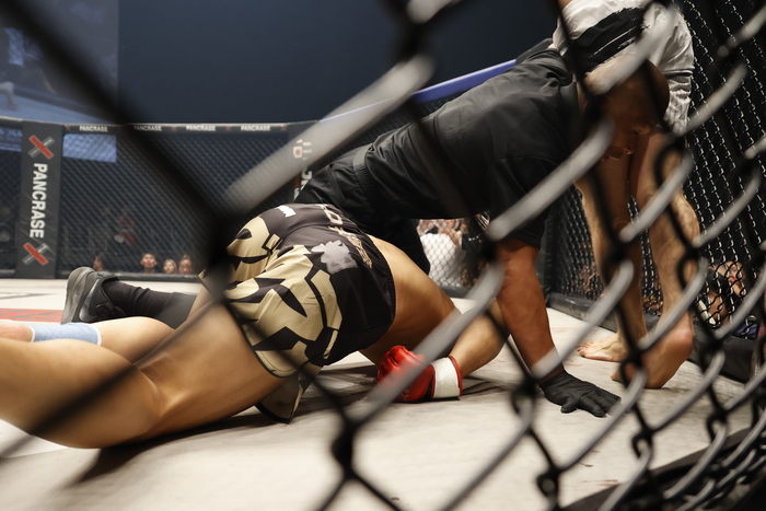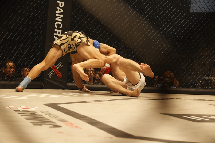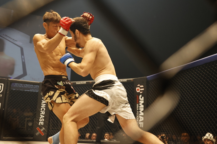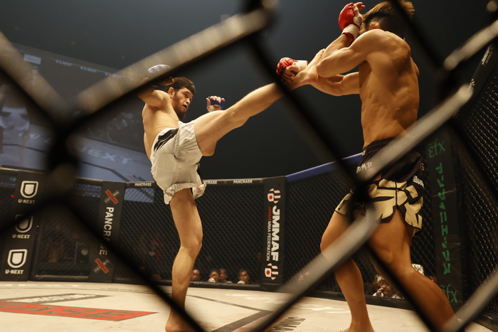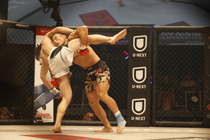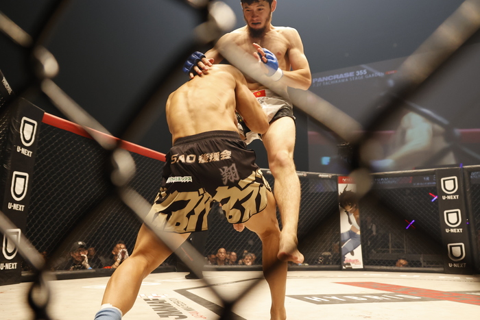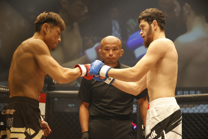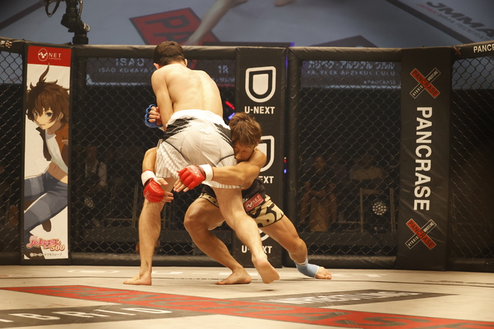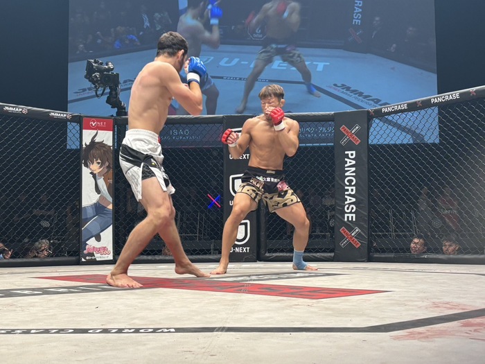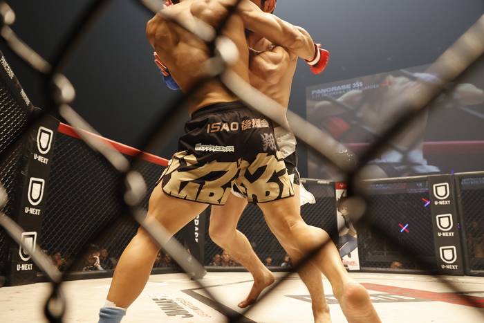 1R、サウスポーのISAOにウルルはオーソドックス。左ミドル、インローを蹴るISAO。飛び込んで左ストレートを放つ。左右のパンチを入れるウルル。飛び込み際にISAOがタックル。テイクダウン。