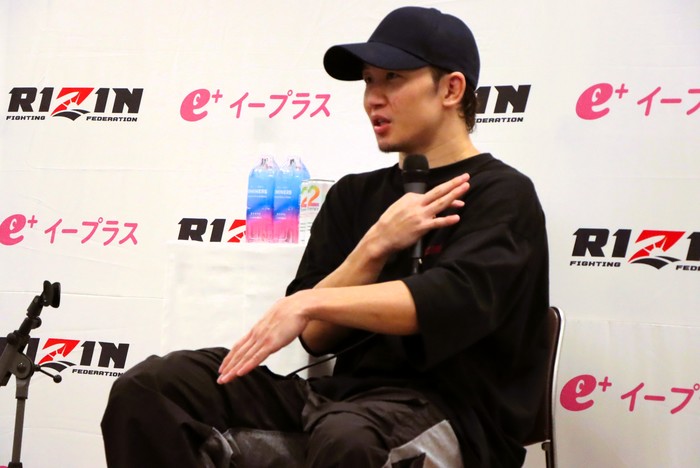 「やりました。えー、そうだな。フェザー級のベルトはもともと俺のために作られたと思っているし、一番、RIZINが旗揚げされて、俺が出場し始めて7連勝したときもフェザー級に相手がいなくて。で、俺が盛り上げてきたという自負があるので、最後は絶対フェザー級のベルトを獲りに行きたいと思います」