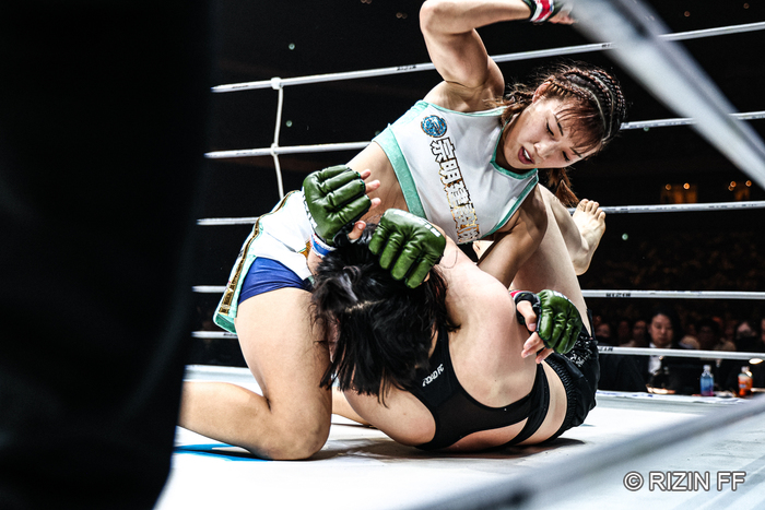 52kgオーバーでもきっちりと一本を極めて見せた伊澤。これで16戦全勝に(C)RIZIN FF