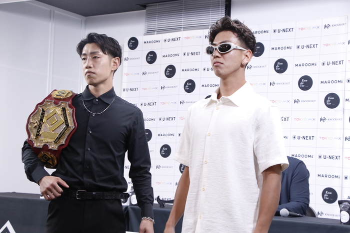 互いの印象を聞かれると、福田が「いい人っていうのは分かっているので。でも今回は敵なので失神させてやろうと思っています。スピードもパワーも俺の方が上だと思っているので特に警戒するところはない」と言えば、森岡は「1Rから来てくれるんじゃないかと思って試合を楽しみにしています。始めて5年でやっとタイトルってことでしたが、まだKNOCK OUTのベルトには早いと思うので、自分が勝ってKNOCK OUTの厳しさを教えたいと思っています」と言い放つ。