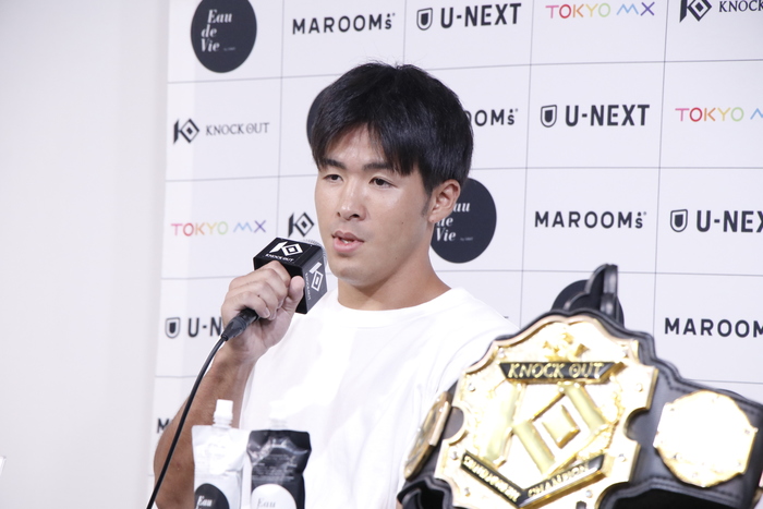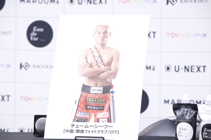 会見では、チュームーシーフーからの「今回KNOCK OUTの王者を決めるタイトルマッチに出場できて嬉しく思います。全力で戦い必ずベルトを獲得します。私が新しい王者になります」とのコメントが読み上げられた。