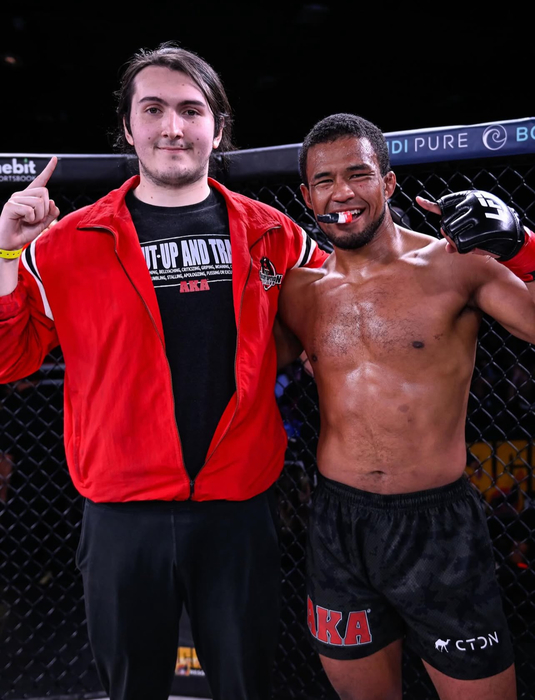 AKAらしく星条旗柄のマウスガードを口にくわえて勝ち名乗りを受けたベイノアは、ケージのなかでのギルバート・メレンデスのインタビューに英語で「押忍、私が言いたいのは、皆さんのサポートに感謝します。そして対戦相手のマヌーフもありがとう。AKAのみんな、コーチありがとう。日本のファンのみなさん、本当にありがとうございます。押忍。