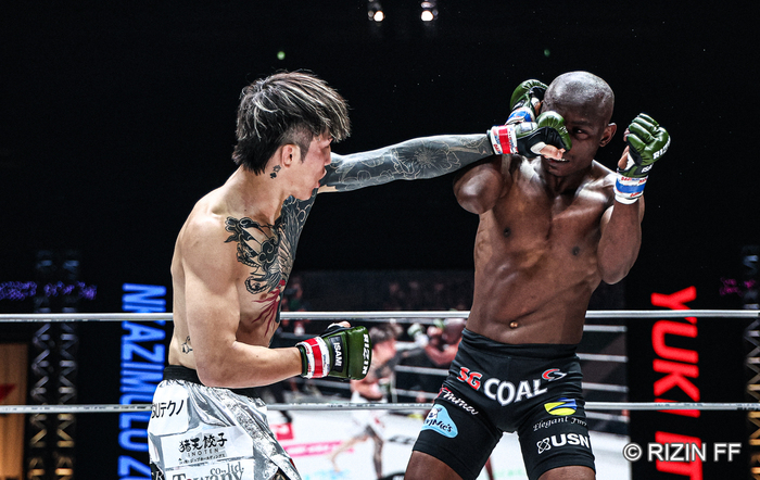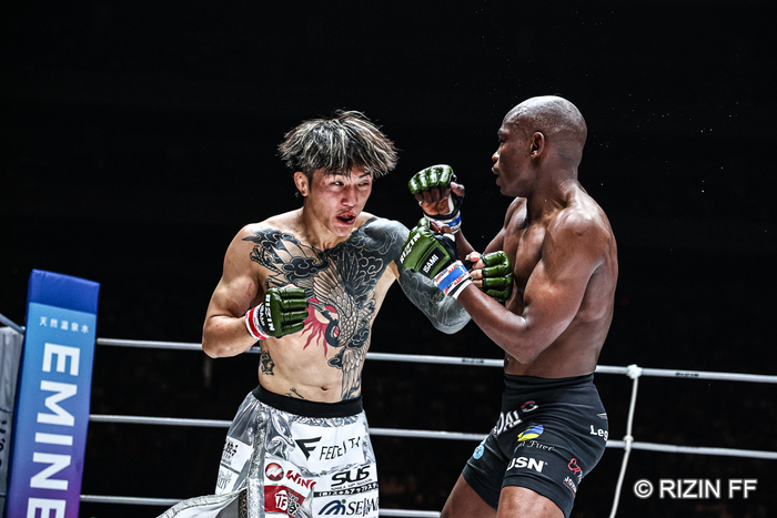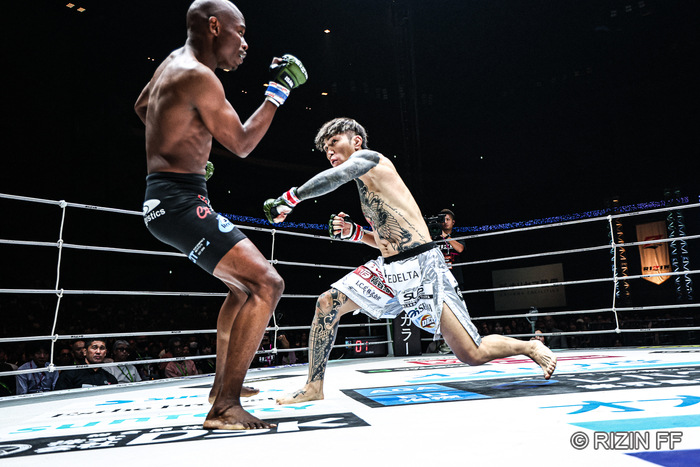 「1R目で、サウスポーだと思ったら(ズールーが)まさかの右から始めてきたので、“あ、右から来るんだ”と思って。まあ2R目くらいからペースは掴めたんですけど、1R目のミドルか何かが、めちゃめちゃ効いて、息ができなくなりましたね。2R目からは距離潰してって、行こう、行こうって思ったんで、そこからペース掴めましたね」
