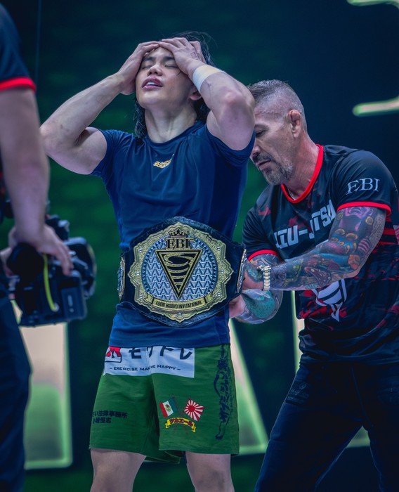 「ニューEBIチャンピオン」とコールされた高橋は、マット上のインタビューで英語で「何て言ったらいいか、今日は僕のグラップリング人生で最高の日です。エディ、自分を招待してくれてありがとう。自分のグリップスキルを証明できたと思います。世界のベストステージに向かいます。UFC Fight Passで配信されていますよね。どうかUFC BJJのステージに」とマイク。