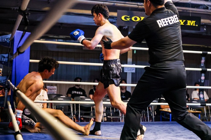 2R、サンギュがパンチ連打で前進し、小野寺も蹴りとパンチのコンビネーションを返す。手数の減ったサンギュをコーナーに詰める小野寺がパンチとヒザ蹴りで追い込み、テンカオでダウンを奪う。
